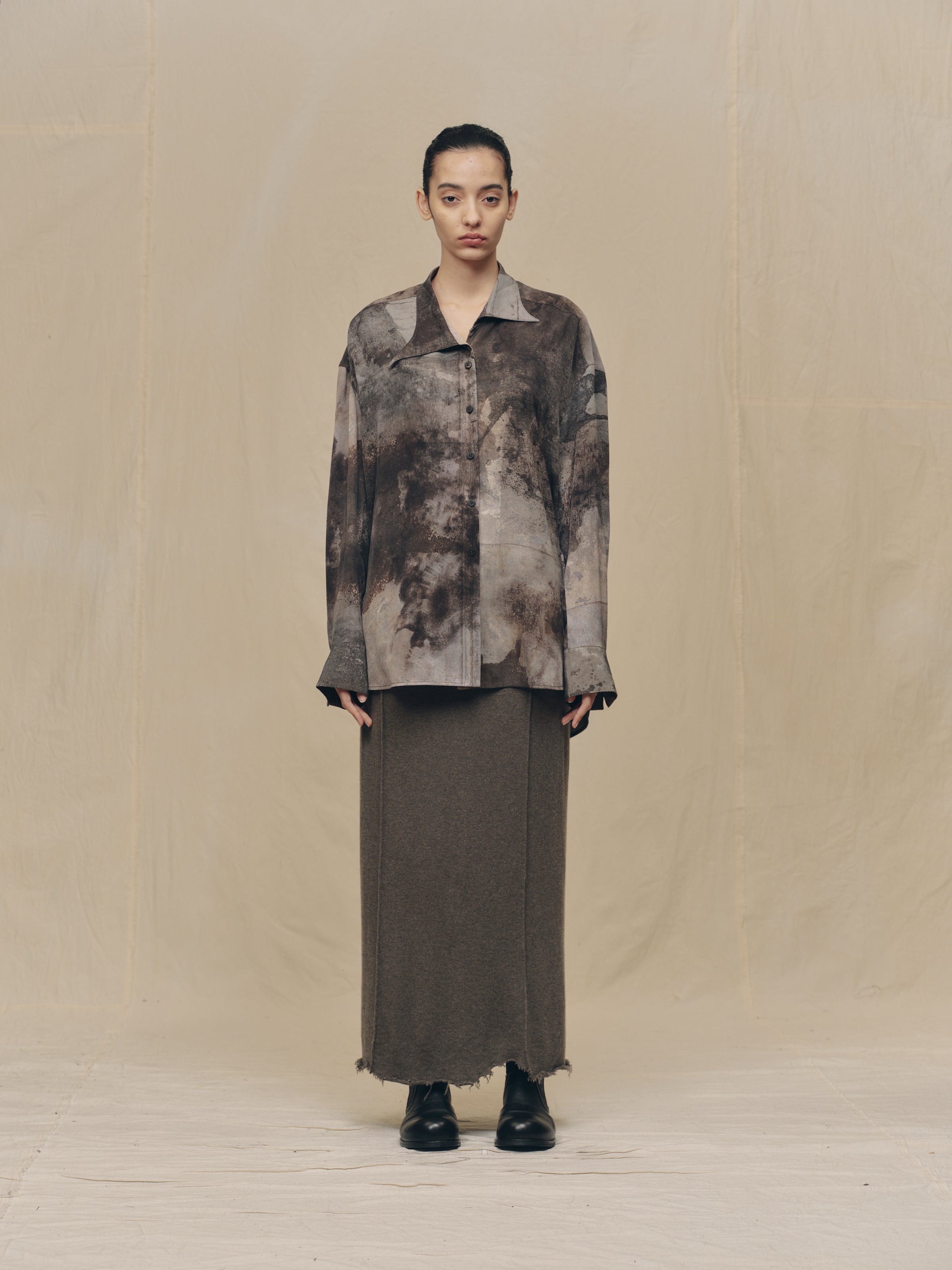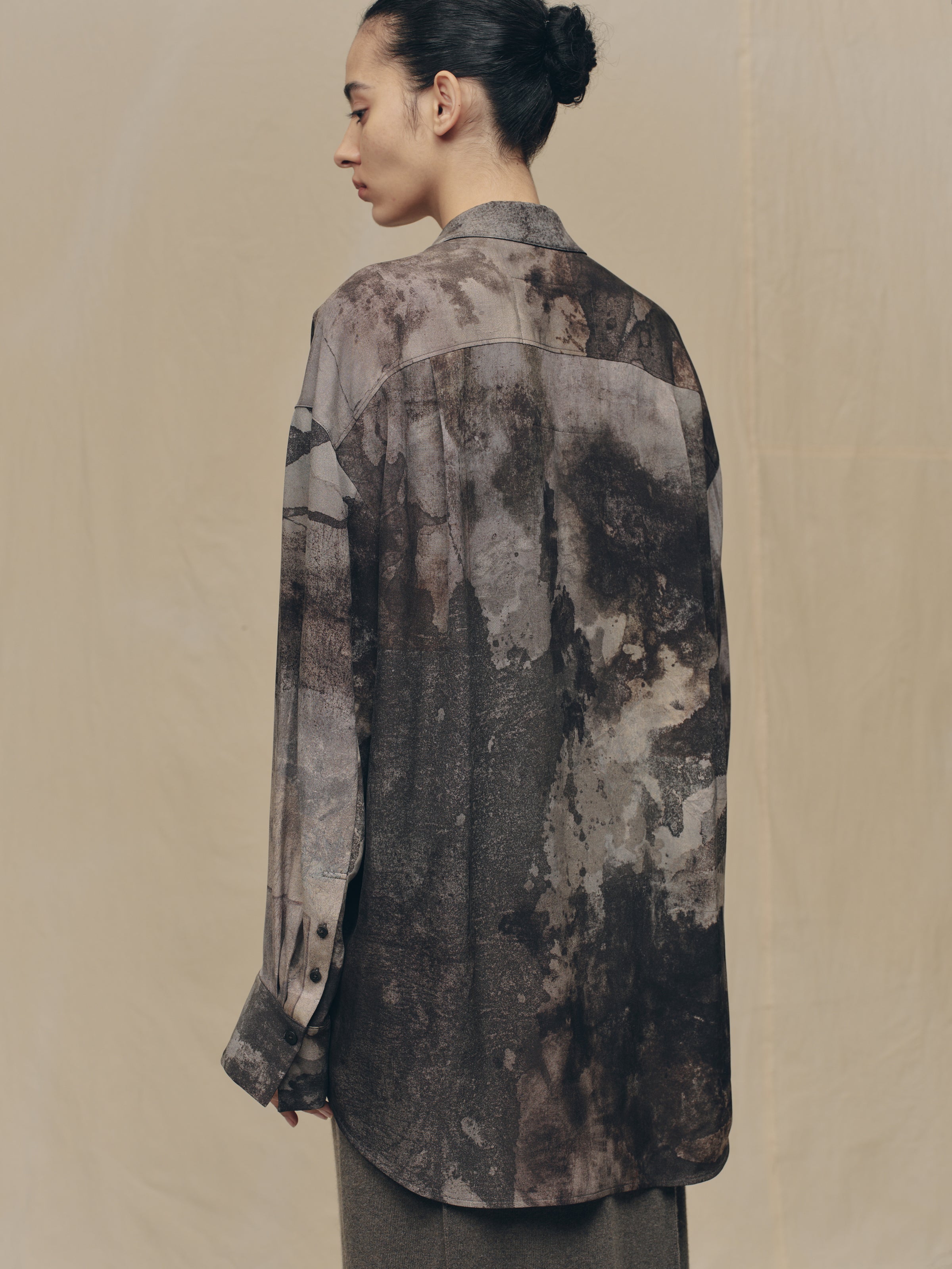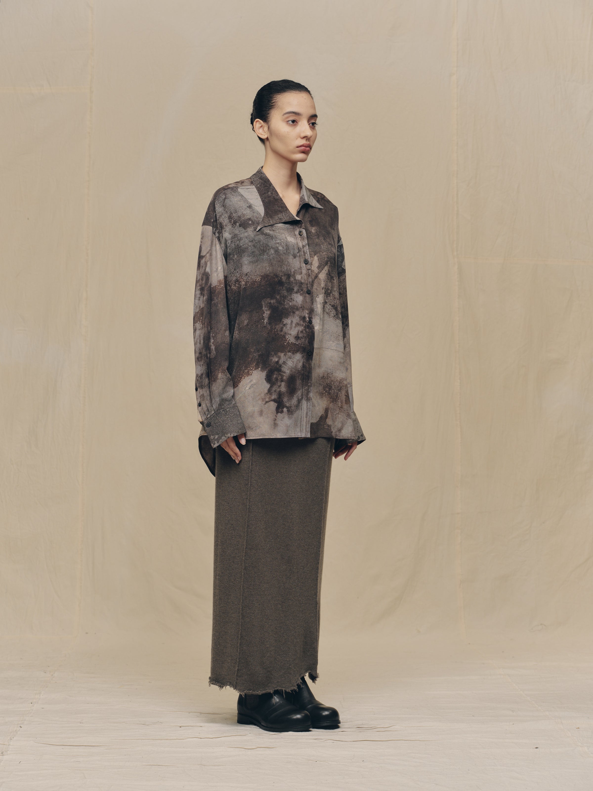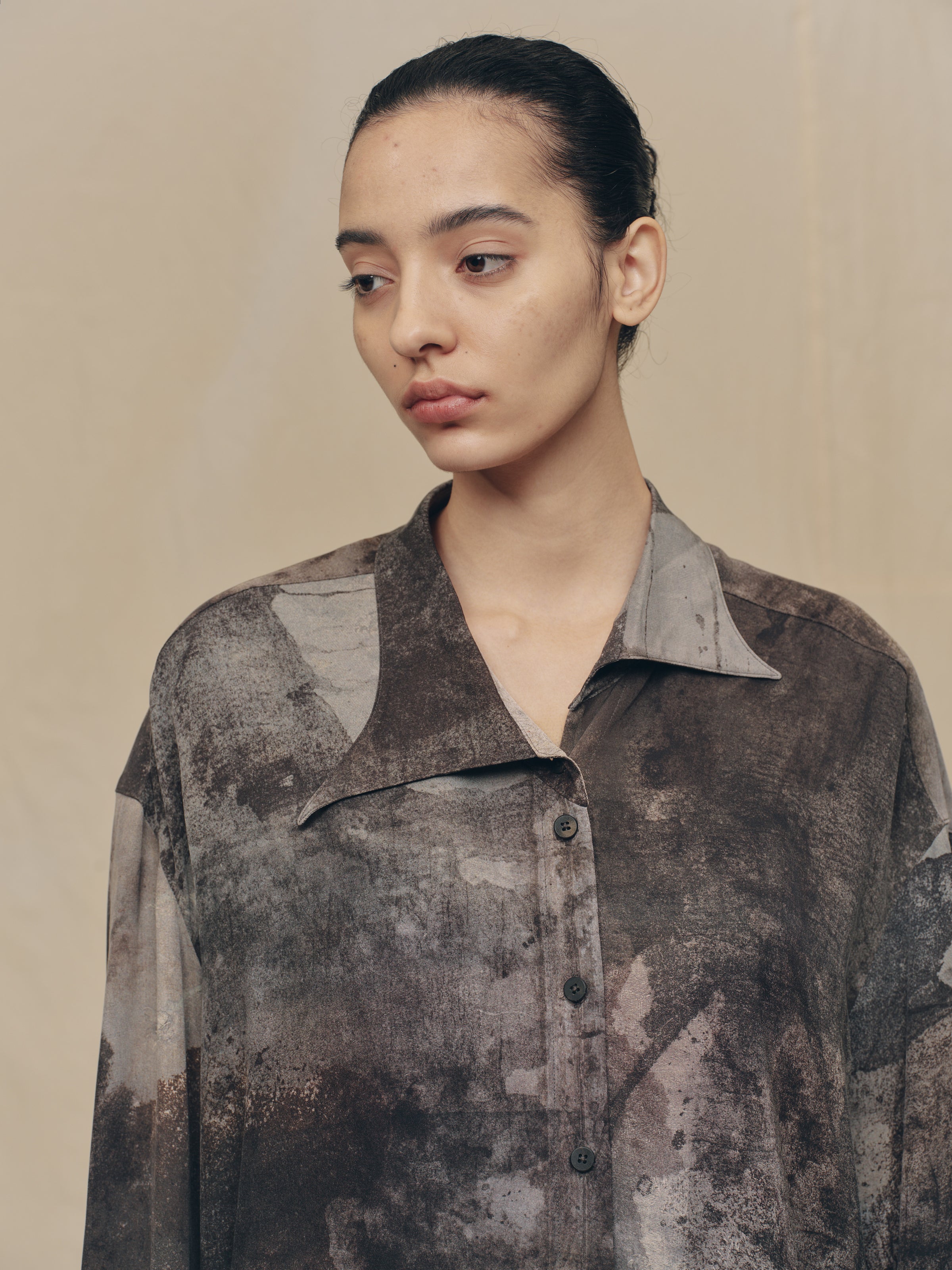 DIGITAL PRINT ASYMMETRIC COLLAR SHIRT