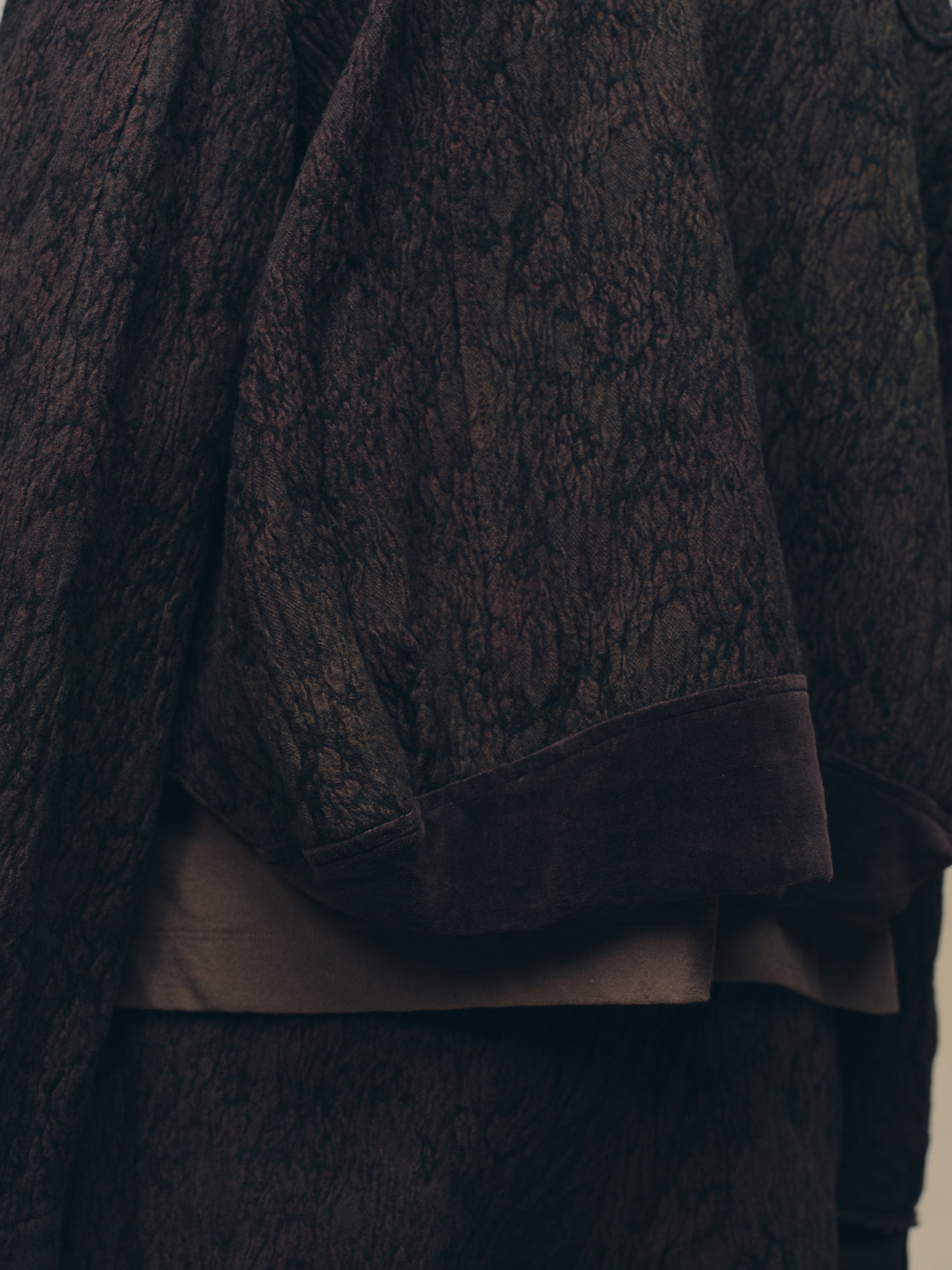 * PATCHWORK DETAIL ON THE COLLAR, THE BACK AND SLEEVES.