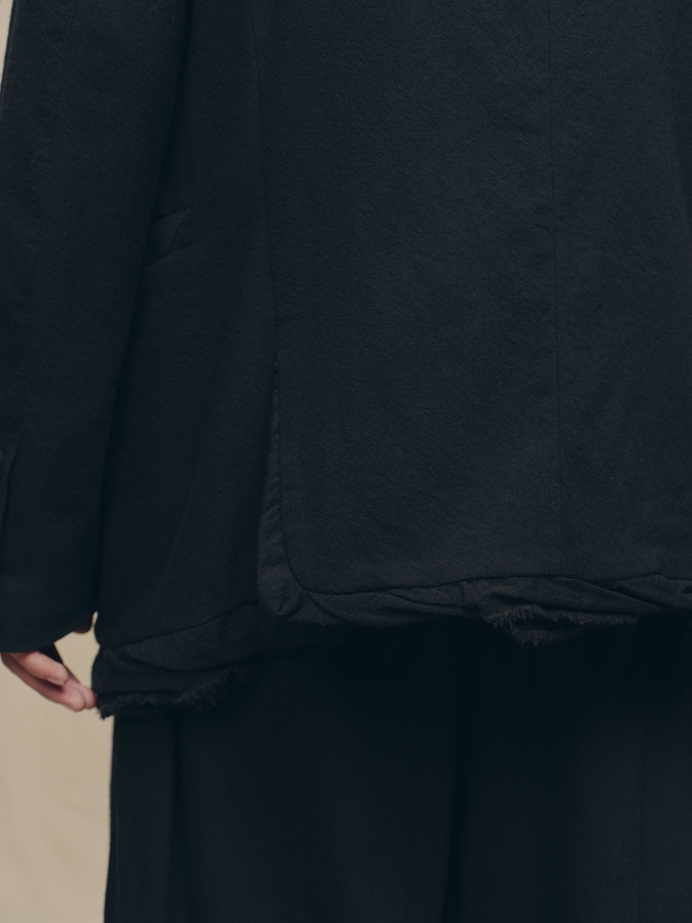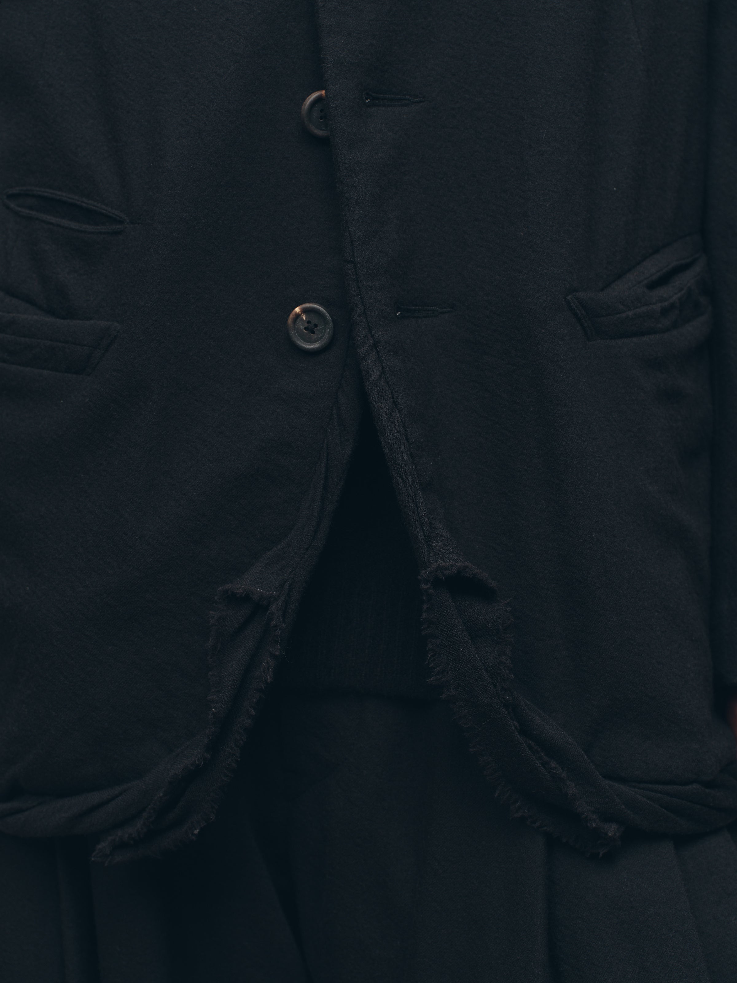 CREASED HEM THREE BUTTON BLAZER