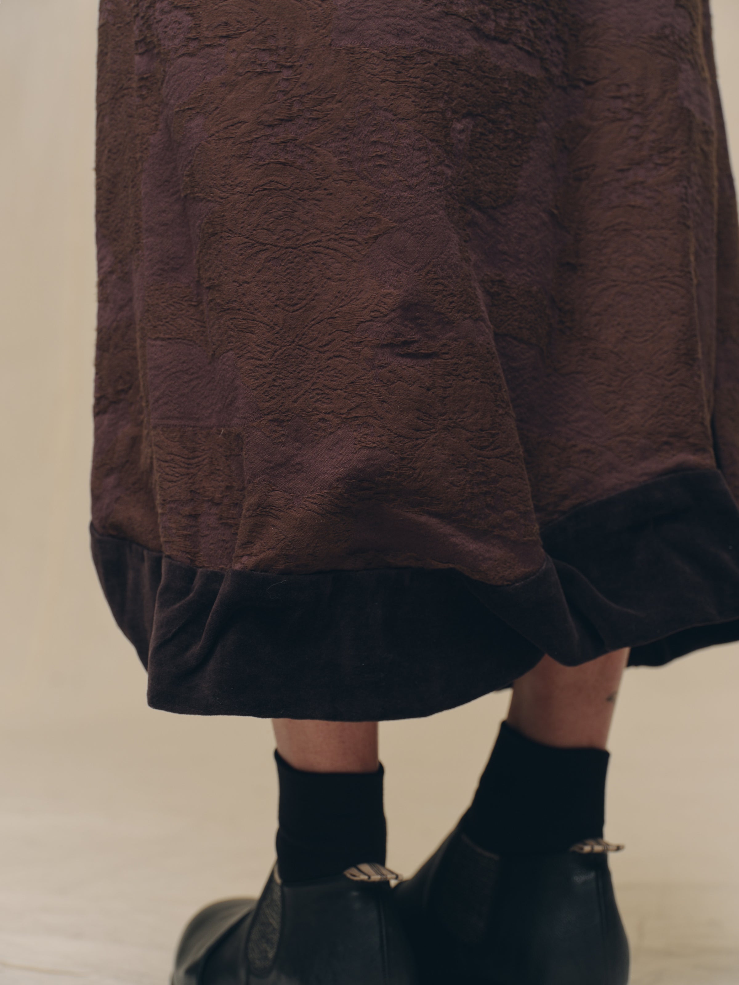 * PATCHWORK DETAIL ON THE HEM.